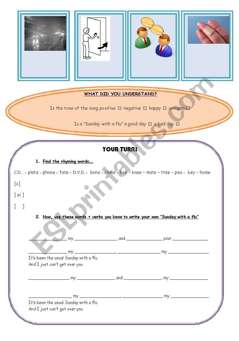 Yodelice Sunday With A Flu Keys Esl Worksheet By Steelcity